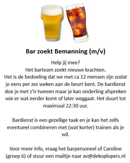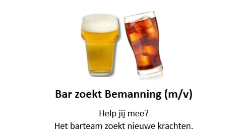 Bar zoekt bemanning